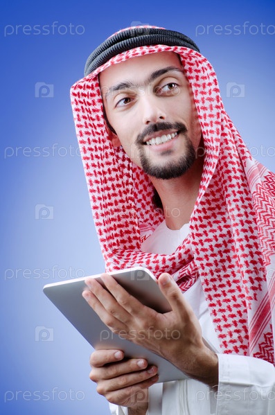 Молодой араб с планшетным компьютером