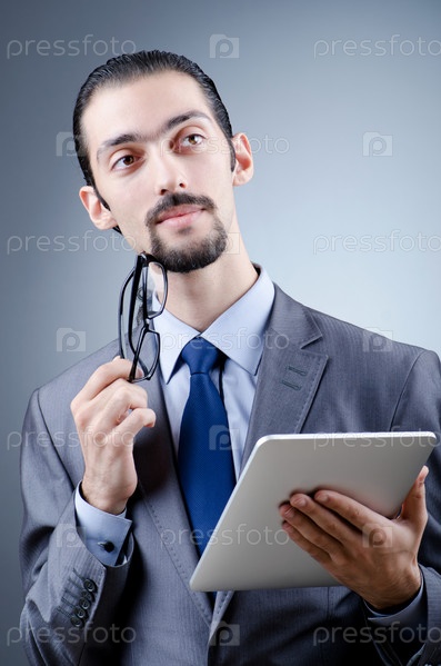 Предприниматель, работающий на планшетном компьютере