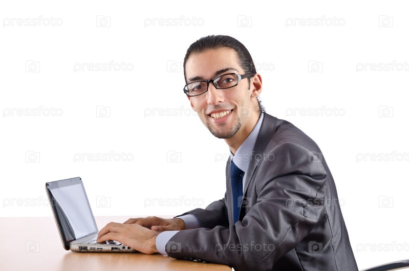 Бизнесмен работает на ноутбуке