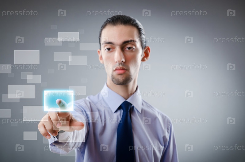 Бизнесмен нажимает на сенсорную кнопку