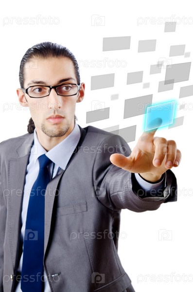 Бизнесмен нажимает на сенсорную кнопку