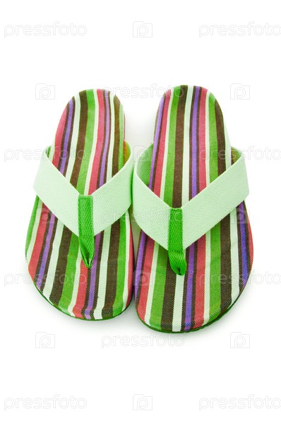 Летниее тапки (сланцы) на белом фоне