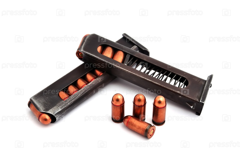 Два магазина от пистолета на белом фоне