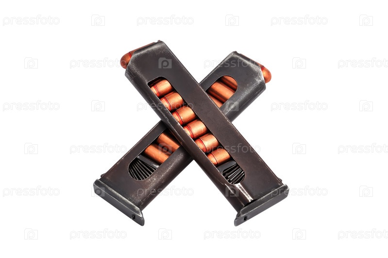 Два магазина от пистолета на белом фоне