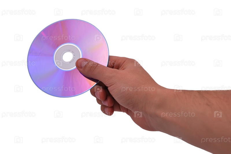 Компакт-диск в руке на белом фоне