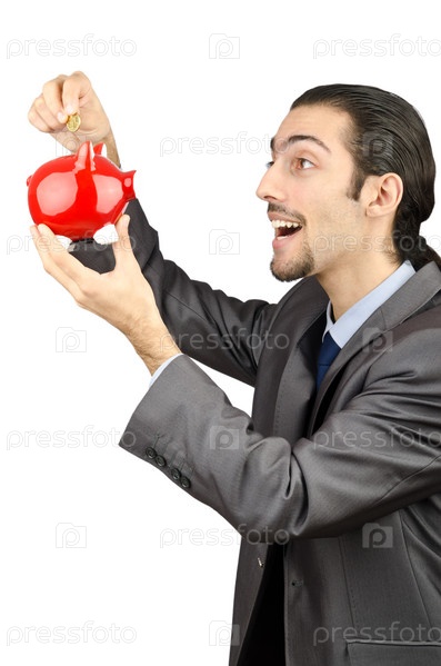 Счастливый мужчина с копилкой