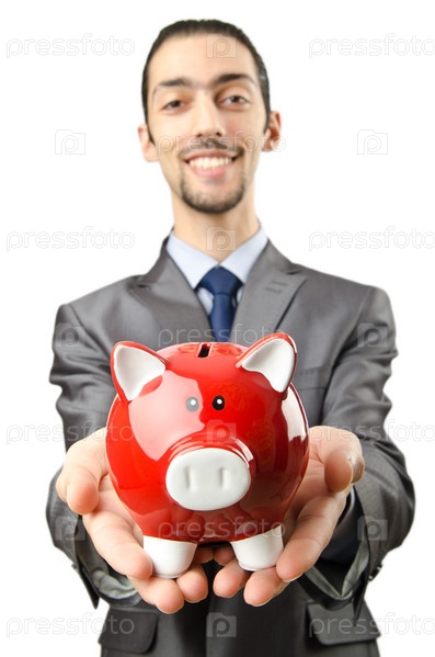 Счастливый мужчина с копилкой