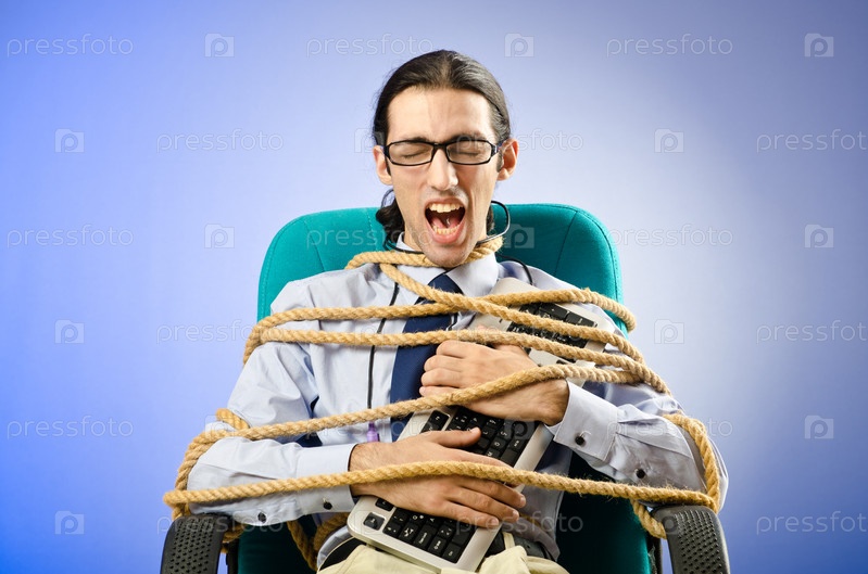 Молодой связанный предприниматель с клавиатурой