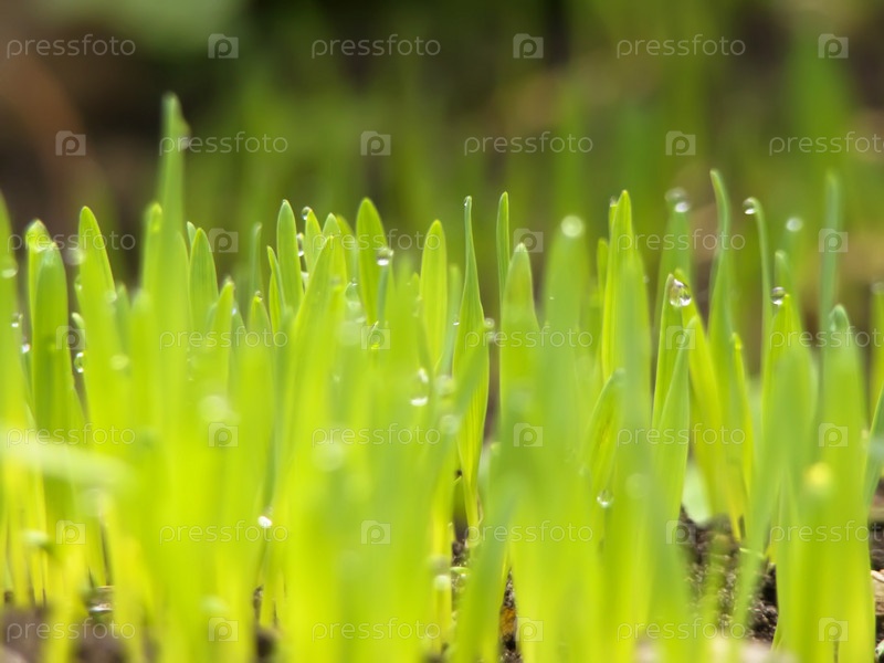 Зеленая трава с каплями росы