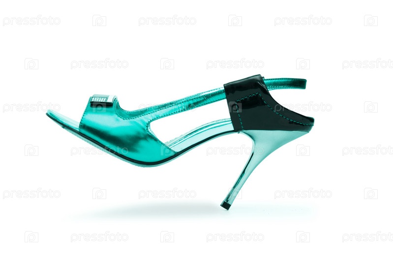 Голубая женская туфля на белом фоне