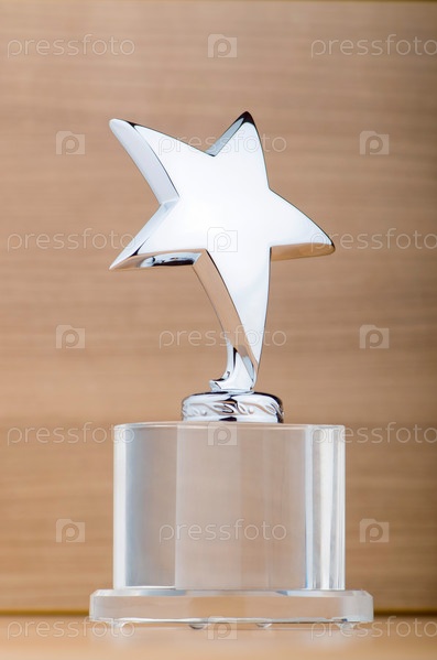 Премия в виде звезды на деревянном фоне