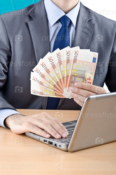 Бизнесмен с деньгами, сидящий за столом