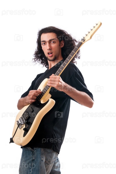 Гитарист на белом фоне