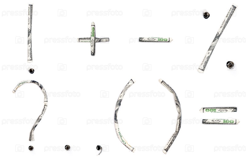 Математические и пунктуационные символы сделаны из долларов, изолированных на белом фоне