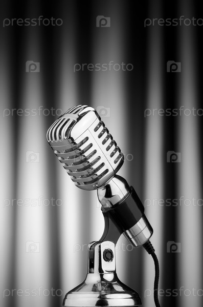 Старинный микрофон на фоне занавеса