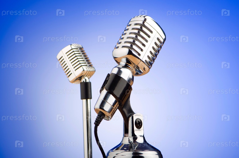 Старинные микрофоны на синем фоне