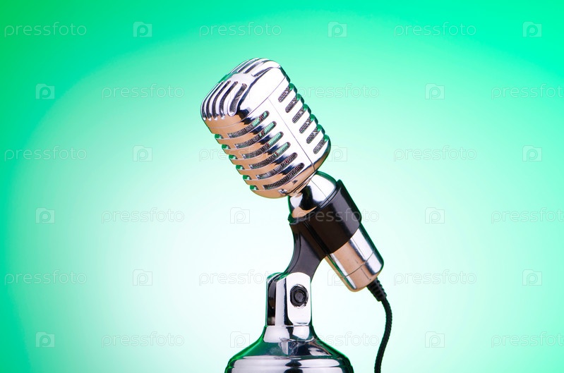 Старинный микрофон на зеленом фоне