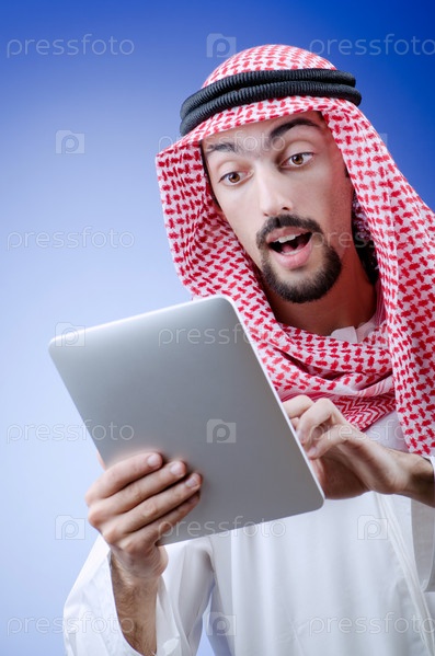 Портрет молодого араба с планшетным компьютером