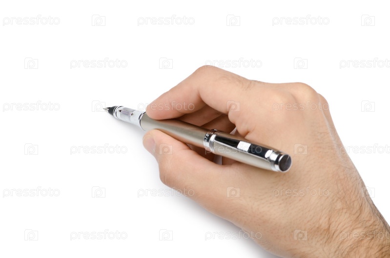 Рука с ручкой на белом фоне
