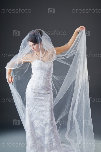Невеста в свадебном платье в студии