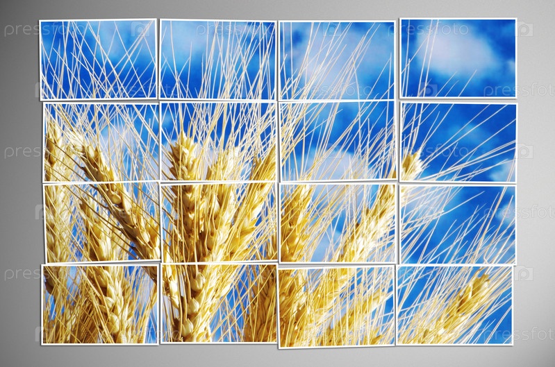 Колосья пшеницы на фоне неба, фото их 16 фрагментов