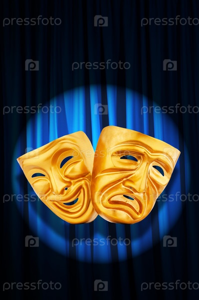 Маски на фоне театрального занавеса