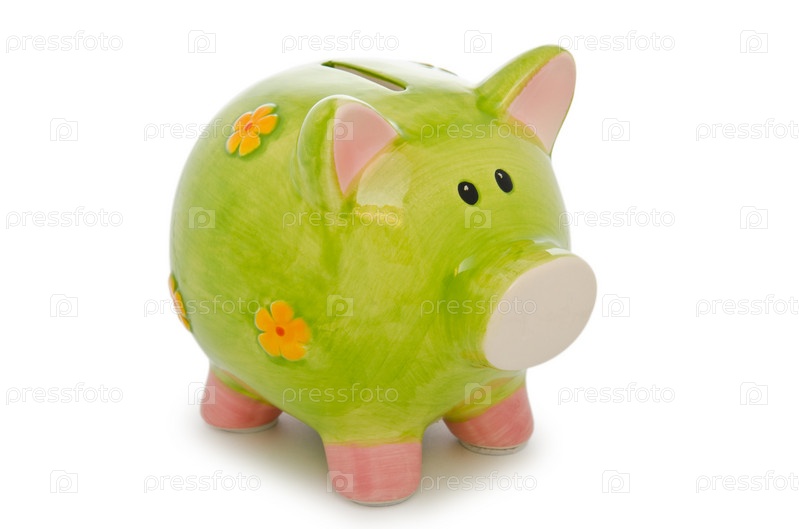 Свинья-копилка на белом фоне