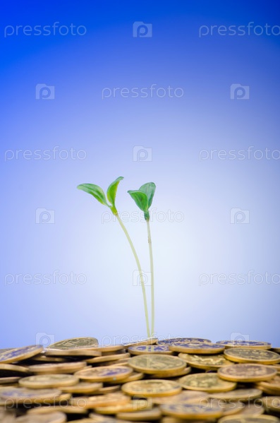Финансовая концепция с саженцами и монетами