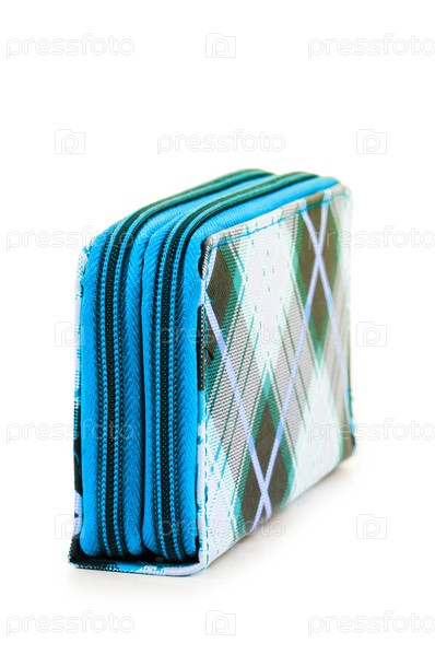 Голубая косметичка на белом фоне