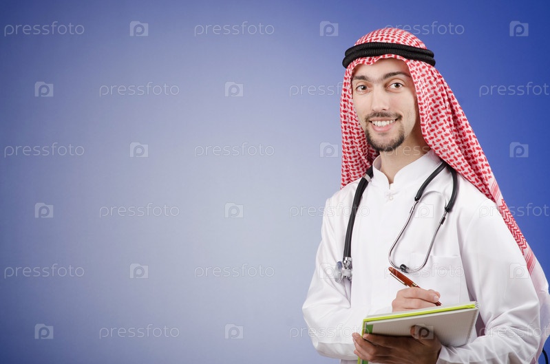 Портрет молодого араба-врача на фоне градиента