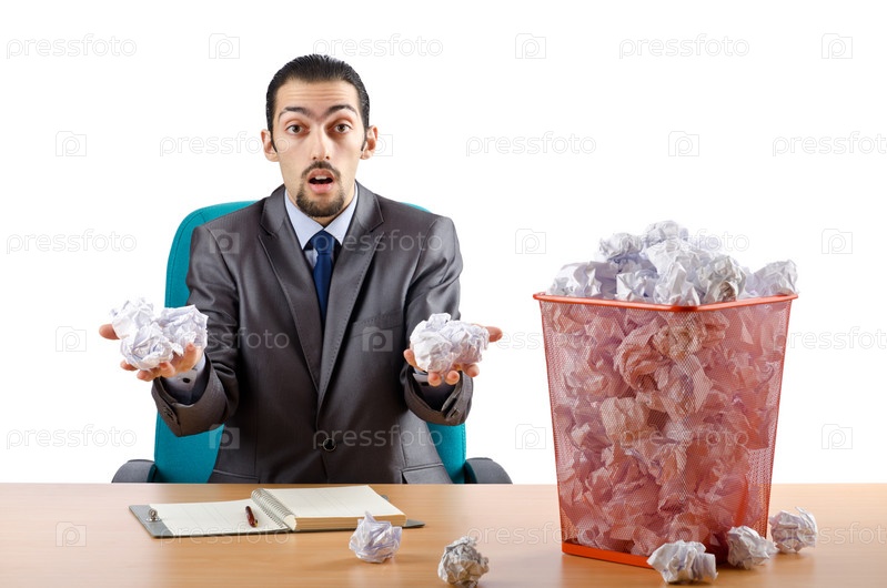 Занятой бизнесмен с большим количеством макулатуры