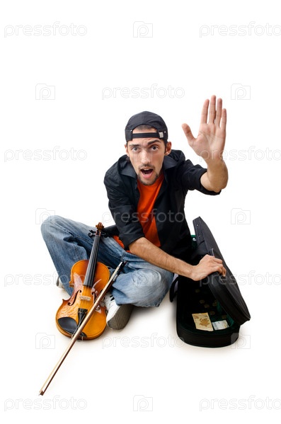 Скрипач, изолированный на белом фоне