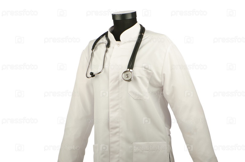 Белый медицинский халат со стетоскопом на белом фоне