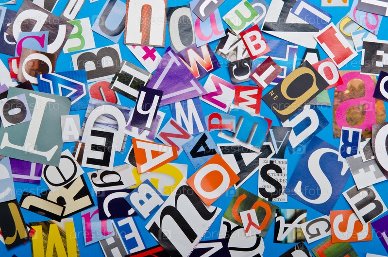 Обрезки бумаги с различными буквами на голубом фоне
