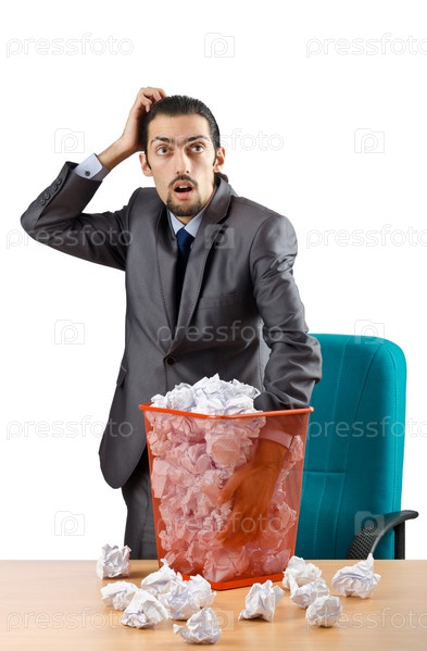Занятой бизнесмен с большим количеством макулатуры