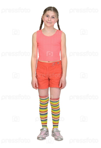 Спортсменка подросток девушка в футболке на белом