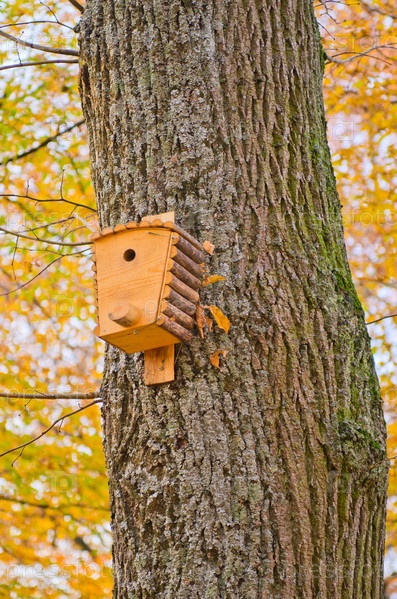 Скворечник в осеннем лесу