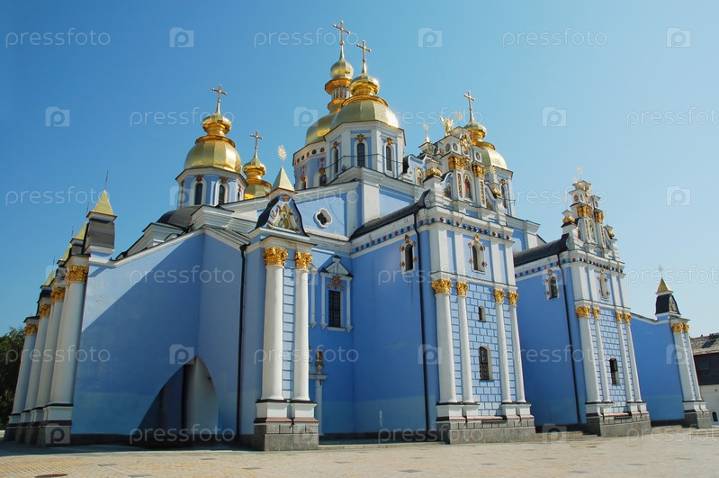Православный монастырь Святого Михаила на голубом небе в Киеве, Украина