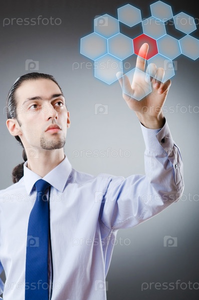 Бизнесмен нажимает виртуальные кнопки