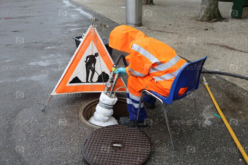 Работник в оранжевой униформе
