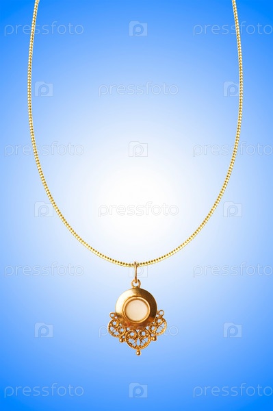 Золотой кулон на цепочке на синем фоне