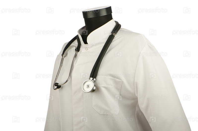 Медицинский халат и стетоскоп на белом фоне