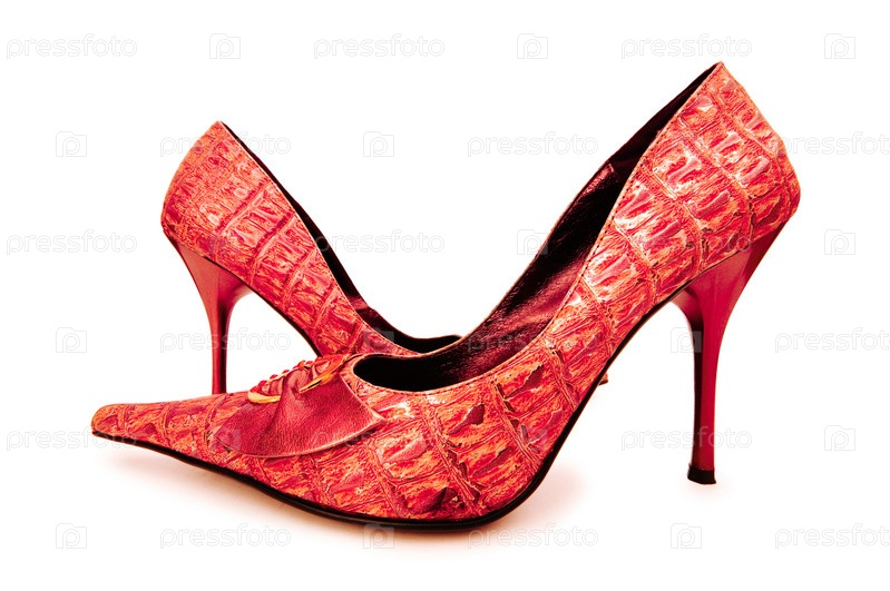Красные женские туфли на белом фоне