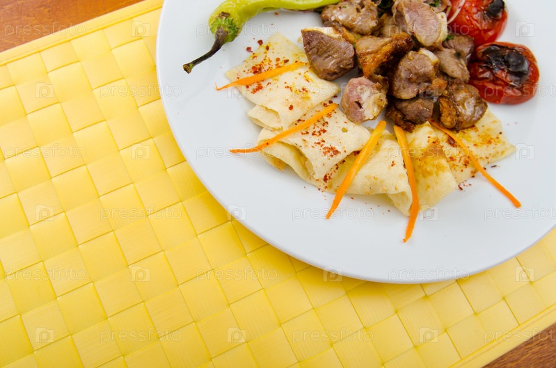 Жареное мясо в тарелке