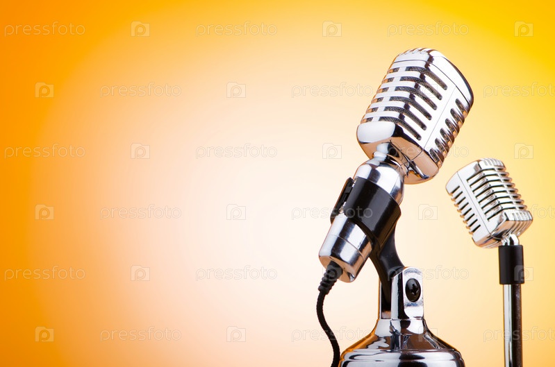 Два микрофона на желтом фоне
