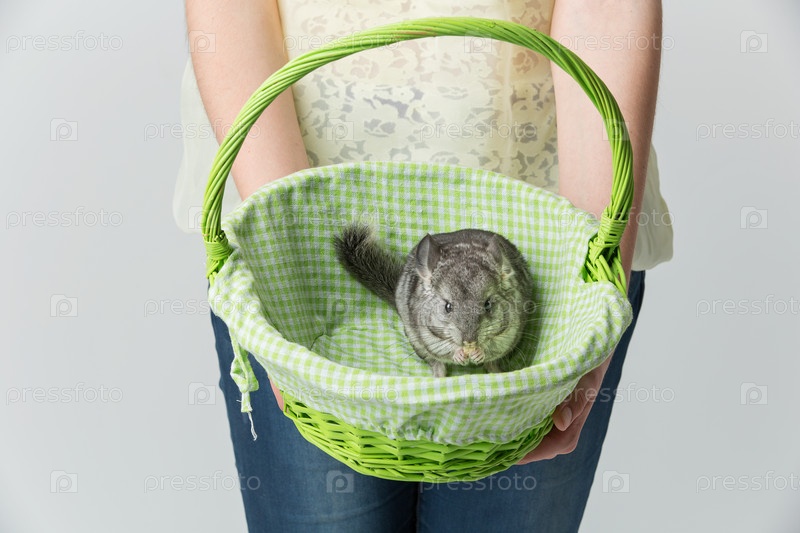 Милая шиншилла в корзине