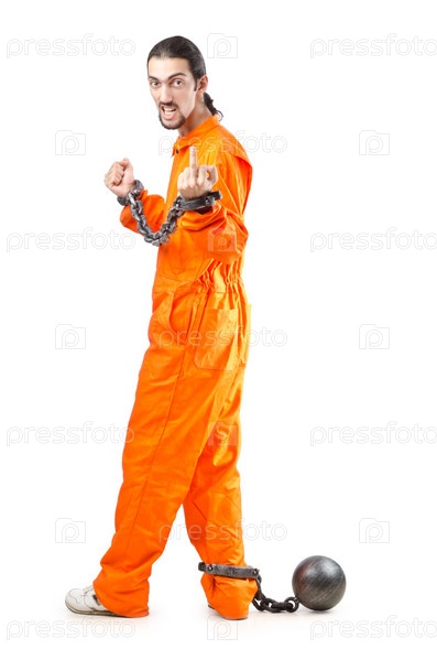 Преступник в оранжевом костюме в кандалах