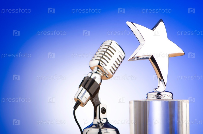 Микрофон и приз в виде серебряной звезды на синем фоне