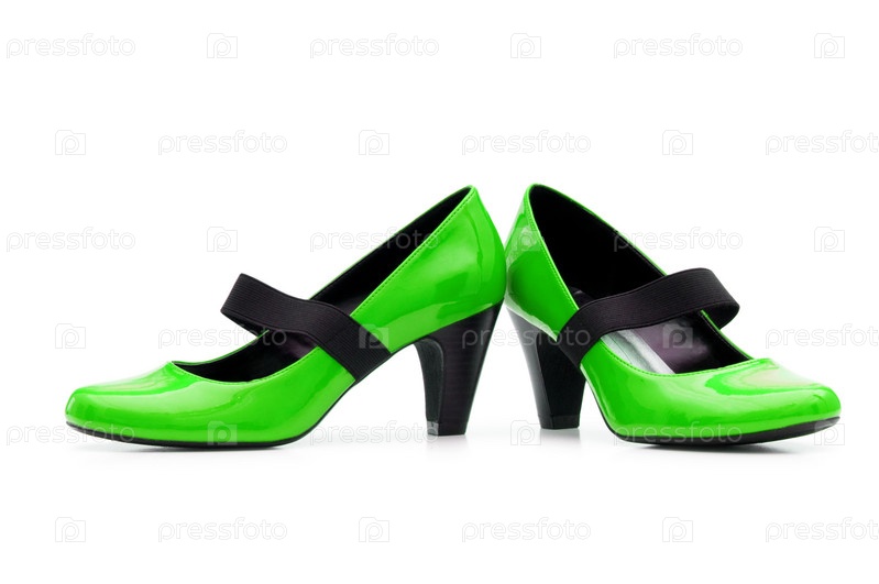 Зеленые женские туфли на белом фоне