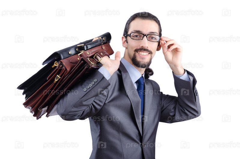 Предприниматель с портфелем на белом фоне
